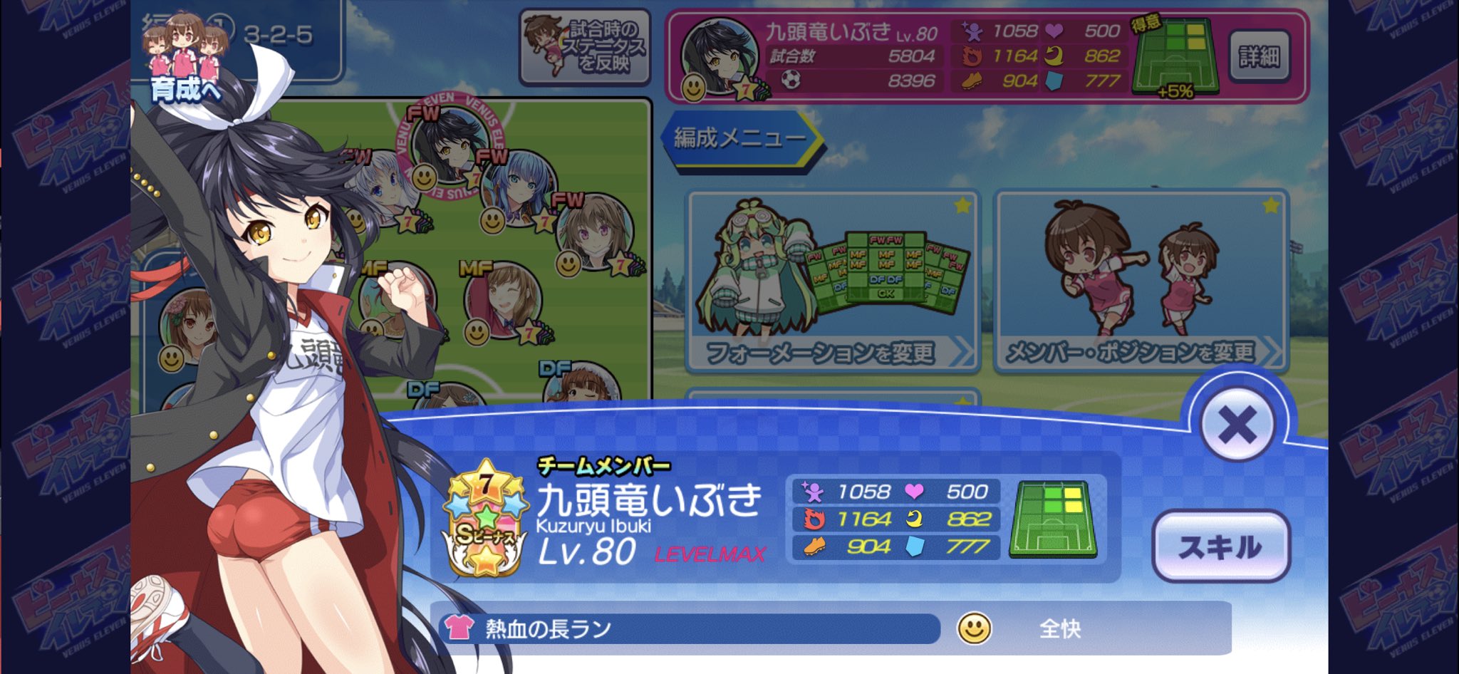 私も3−2−5で起用していますが似たようなSビスキルを持っている選手を他に起用しますとWGの破壊力がグンと増しますよ。